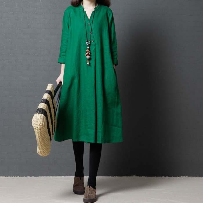追加sale アースグリーン リトアニアリネン100 ロングシャツワンピース Iichi ハンドメイド クラフト作品 手仕事品の通販